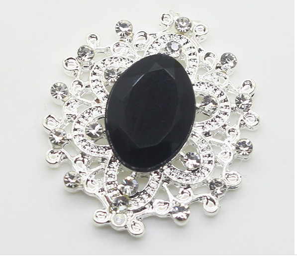 Камінь в сріблястій ажурній оправі 24*26 мм чорний