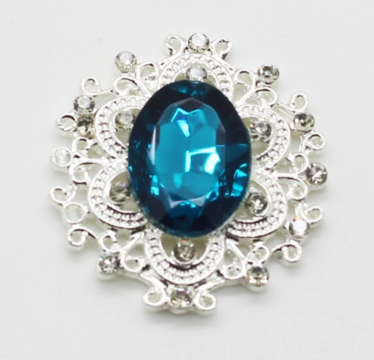Кабошон має центральний прозорий камінь соковитого кольору темної бірюзи