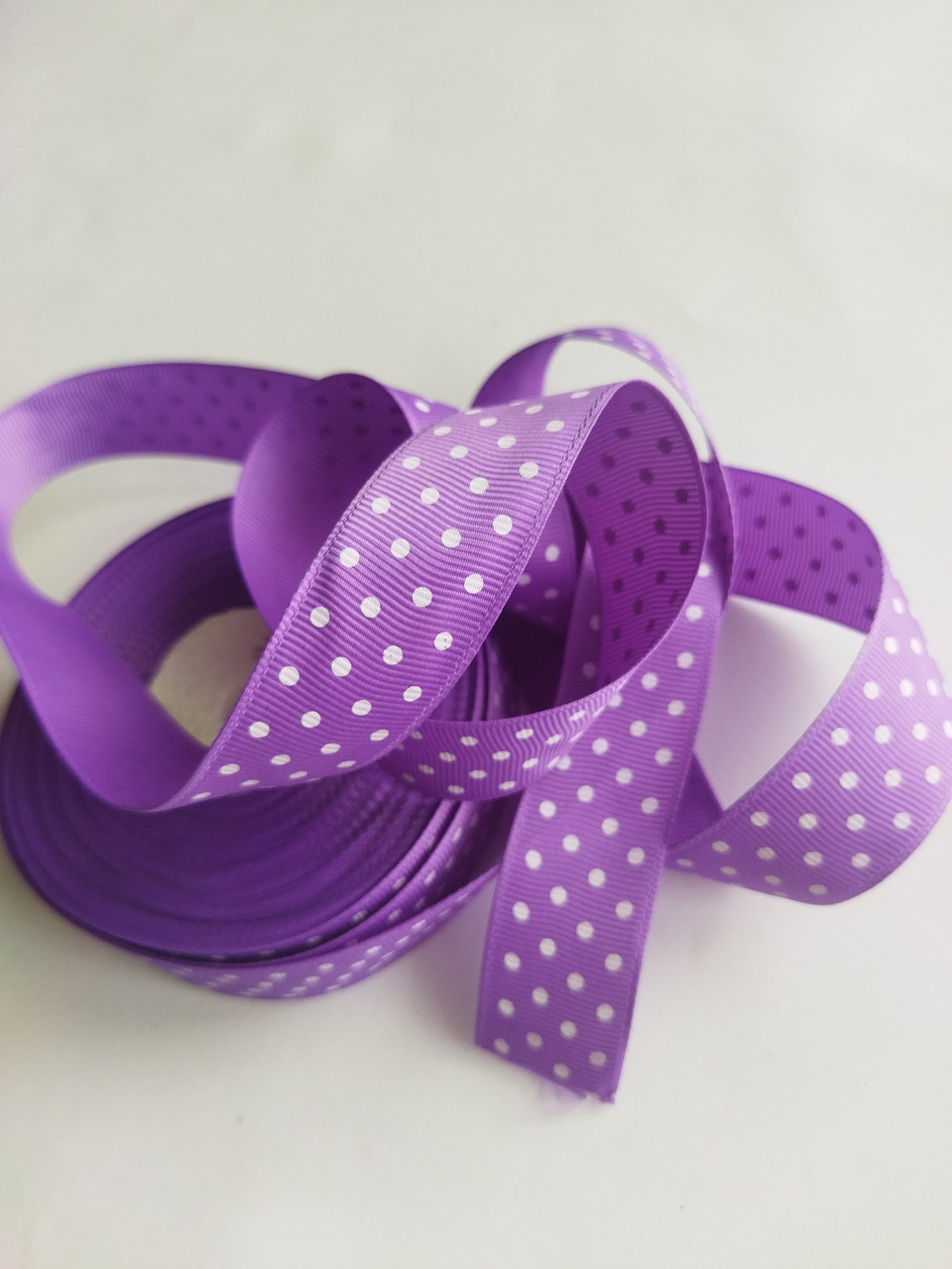 Стрічка репсова в горох No46 світло-фіолетова завширшки 2,5 см
